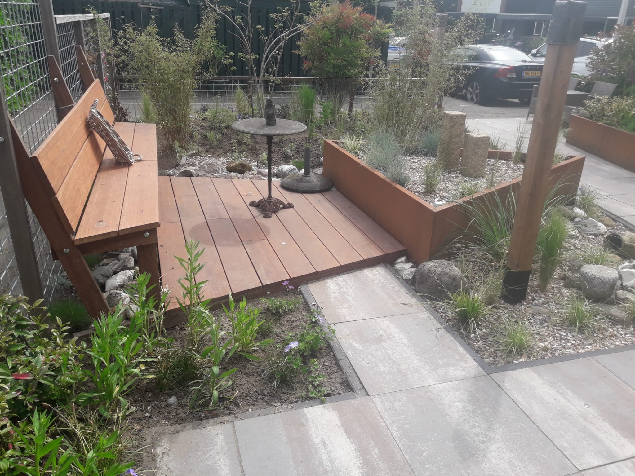 De bamboe terrasdelen 1x per jaar in de olie zetten is al voldoende. De bamboe behoudt dan tevens zijn kwaliteit en kleur en gaat een leven lang mee.