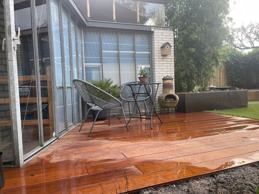 De extra 4 centimeter, vergeleken met de standaardmaat, betekent minder naden, wat bijdraagt aan een strakke en cleane look die uw bamboe terras tot één geheel vormt.
